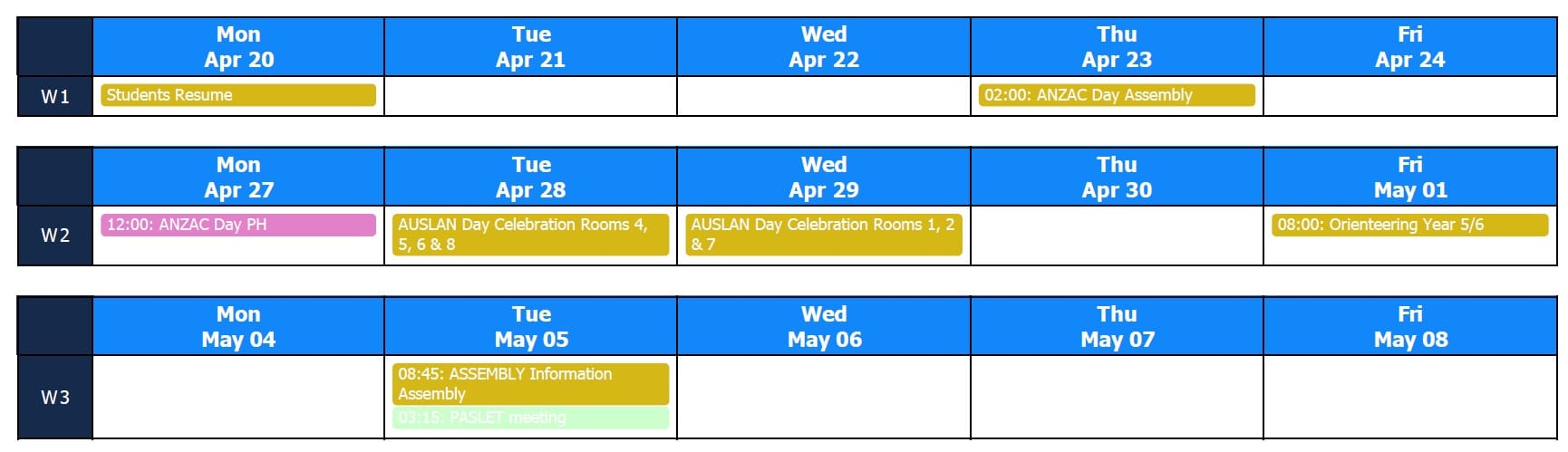 27 Apr - ANZAC DAY public holiday.